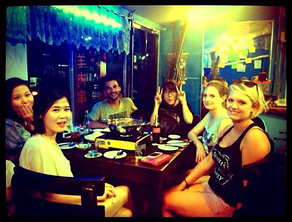 有時候,晚餐大伙兒相招來去學校外打打牙祭,這天我提議去學校附近外的一間中式餐館吃火鍋,我旁邊的巴西女孩兒一直很驚訝