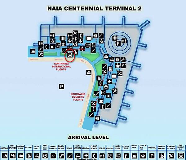 其設計不像香港、新加坡等國際大型機場附設有航廈穿梭輕軌或航廈巴士可直接往來各航站大樓,在馬尼拉機場若需要別的航廈轉機,可是得先出航廈大樓的喔!