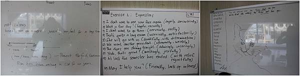 我念的是半斯巴達式的ESL學校,每天早上有單字測驗及進出門禁的管制,如果當日測驗未過就不可傍晚外出。在學校雖然同學們程度不ㄧ但都會分門別類的安排聽說讀寫的一對一課程和一些很「歡樂的」團體課﹝←__←﹞。和一班學生不同,因為自己程度太差所以其實前三個月我的一對一都在上speaking,課程前半段老師會先帶我學習單字後半段則問我非常簡單的問題然後我試著回答,老師們多半都會互相交流學生的狀況已便拿捏如何教課。以我的例子來說,從早到晚老師們都要求我大量的多說,即便錯誤也要再三回應直到他們覺得可以聽懂我要表達的事,他們也會糾正我的文法或發音。