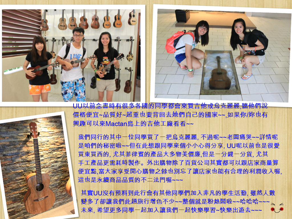 我們在乎學生到了國外後是否可以習慣國外的一切,因此非凡很重視學生在菲律賓的週末生活,目前非凡在菲律賓宿霧有特別組織免費的假日活動,每週都會有不同的主題,非凡的活動包含: City tour、海邊踏浪衝衝衝、老饕的聚餐(我們的宿霧代表可是很知道哪裡有好吃的私房菜呢)、看電影、Spa放鬆行、跳島行程…等,所有活動內容都會在非凡的官網、部落格、facebook公告大家喔。