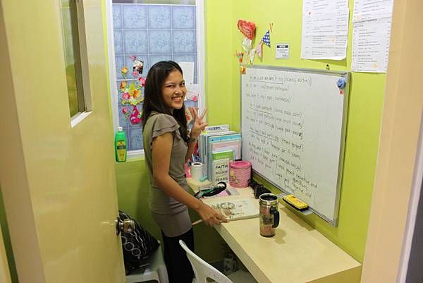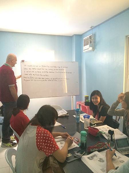 走進WELTS的建築裡即可發現學校非常注重細節,教室內牆色彩以水藍與碧綠兩色為主,恰似宿霧令人著迷的藍天與映著耀眼綠光的大海,牆上更有一段段激勵人心的英文語錄,如”Men are not prisoners of fate, but only prisoners of their own minds.” 表達出人的意念才是決定自身成就的要素,而非宿命,好似鼓勵著學生們要運用堅強的意志在學習英文上取得一番成績啊,我光看這些語錄都受到感染了呢,迫不及帶回家重拾英文筆記! :P 重要的是除了在吸菸區的涼亭外,WELTS整個校園皆實施EOP(English Only Policy),嚴禁學生用英文以外的語言溝通。首次犯規者必須繳交”悔過書”,說明自己將遵守EOP,二~五次犯規者將處以罰金,集滿六次犯規將被開除學生身份,不得繼續就讀喔! WELTS可是很認真的希望為學生打造出一流的英語環境,也期許學生們要和WELTS共同成長啊~~
