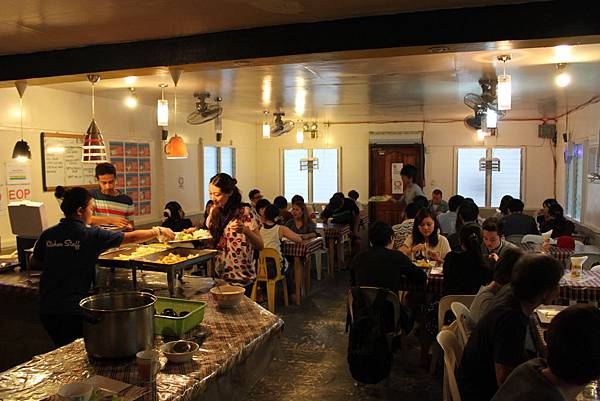 這是用餐的地方,我覺得很溫馨,吃飯的時候大家都可以聊天,很快就熟了。