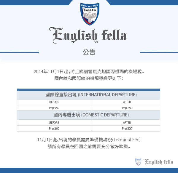 馬尼拉飛台灣 從P550 調漲成P750(此部分在機場入關前支付)