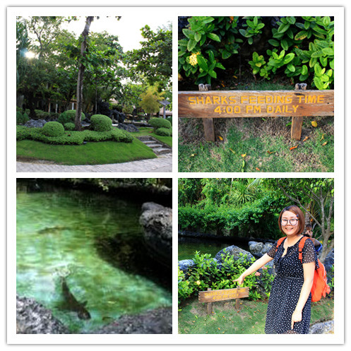 園區不大但卻蠻寧靜的,忽然瞧見一排韓國人往池子裡瞧個不停,旁邊的小小立牌則寫著「Sharks Feeding Time 4pm Daily」?