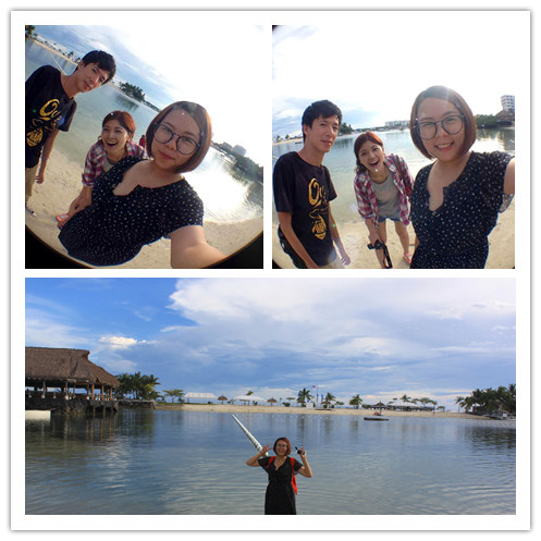 沒有下水的我們總該來踏浪一下吧~~Yoko拿出魚眼鏡頭來~~這玩意原來非常有趣吶~~下次回台,我也要來買一個玩玩~~。